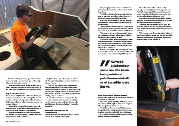 tua talteen, jolloin työskentely-ympäristö pysyy täysin siistinä.” teollisuusaloilla laserilla puhdistetaan vaikkapa paino- ja pak