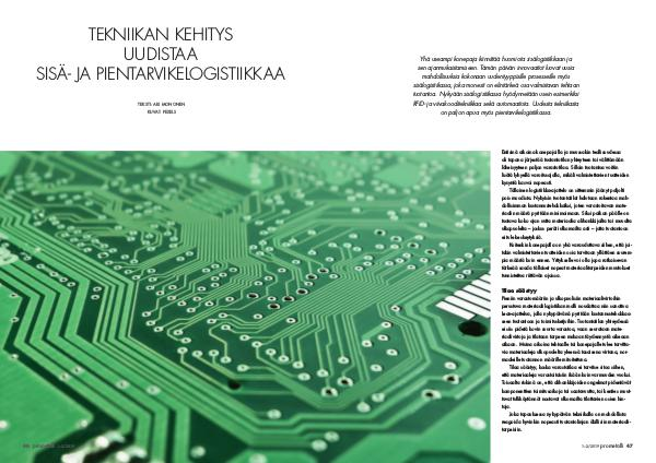 TEKNIIKAN KEHITYS UUDISTAA SISÄ- JA PIENTARVIKELOGISTIIKKAA TEKSTI: ARI MONONEN KUVAT: PEXELS 46 prometalli 1–2/2019