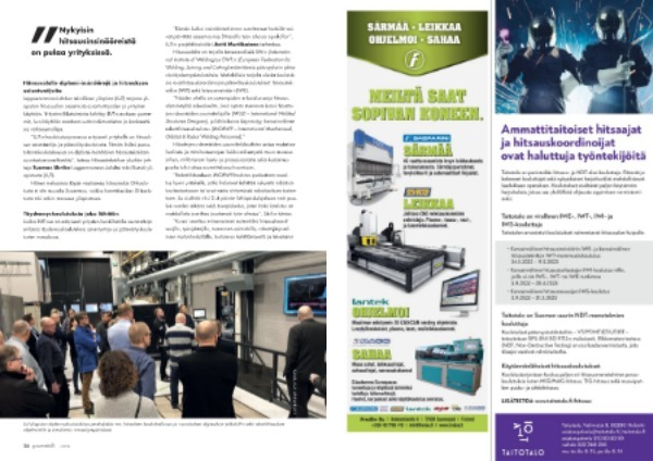 ” Näiden ohella on useampiakin erikoiskursseja hitsausalan tietyiltä aihealueilta . Juuri nyt on menossa kurssi hitsattujen rakenteiden suunnittelijoille ( IWSD – International Welded Structures Designer ), ja lähiaikoina käynnistyy kansainvälinen robottihitsauskoulutus ( IMORWP – International Mechanised , Orbital & Robot Welding Personnel ).”