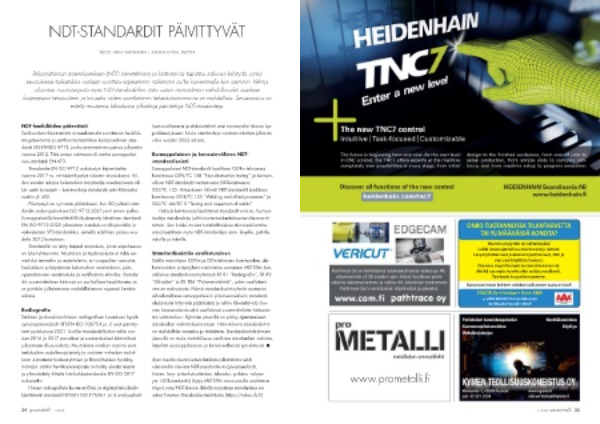 Rikkomattoman aineenkoetuksen ( NDT ) menetelmissä ja laitteistoissa tapahtuu jatkuvaa kehitystä , jonka seurauksena tarkastuksia voidaan suorittaa nopeammin , tarkemmin ja / tai halvemmalla kuin aiemmin . Kehitys aiheuttaa muutostarpeita myös NDT-standardeihin , jotta uusien menetelmien mahdollisuudet saadaan laajempaan tietoisuuteen ja toisaalta niiden soveltaminen tarkastustoiminnassa on mahdollista . Seuraavassa on esitelty muutamia lähiaikoina julkaistuja päivitettyjä NDT-standardeja .