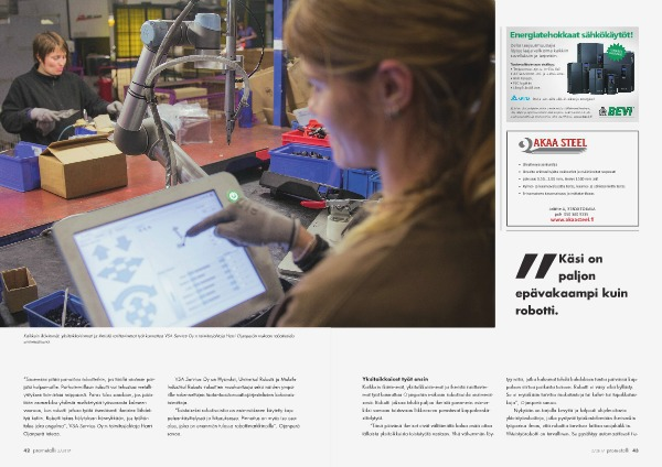 senä. Robotti jaksaa tehdä paljon ihmistä paremmin esimer- koja”, Ojanperä sanoo.