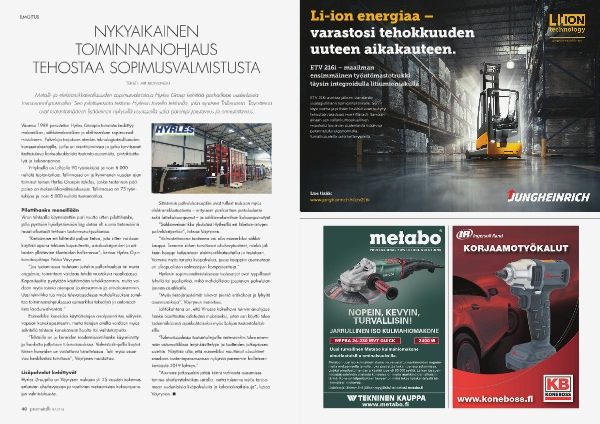 Metalli- ja elektroniikkateollisuuden sopimusvalmistaja Hyrles Group kehittää parhaillaan uudenlaista toiminnanohjausmallia. Sen pilottiversiota testaan Hyrlesin toisella tehtaalla, joka sijaitsee Tallinnassa. Tavoitteina ovat tuotantomäärien lisääminen nykyisillä resursseilla sekä parempi joustavuus ja ennustettavuus.