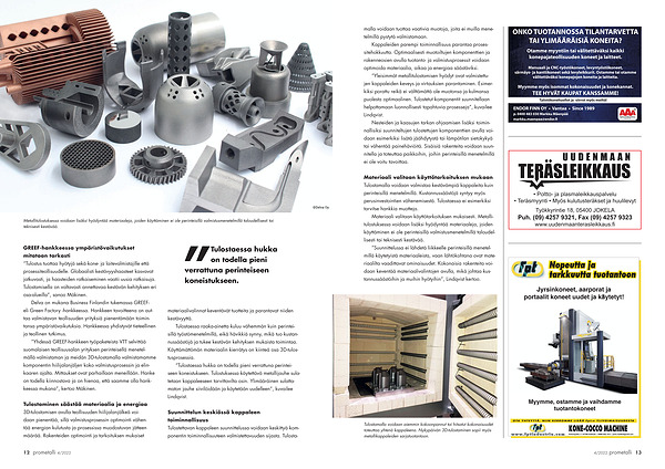 ” Tulostaessa hukka on todella pieni verrattuna perinteiseen koneistukseen . Tulostuksessa käytettävä metallijauhe sulatetaan kappaleeseen tarvittavilta osin . Ylimääräinen sulattamaton jauhe siivilöidään ja käytetään uudelleen ”, kuvailee Lindqvist .