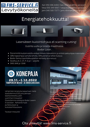 Lämpimästi tervetuloa tapaamaan meitä osastollemme E325 ja kuulemaan laserkoneteollisuuden uusimmat innovaatiot ! Osastollamme esittelyssä Bodor Laserin i5 tasolaser . Nähtävillä myös puhdistuslaser ja kuitulaserhitsauskone .