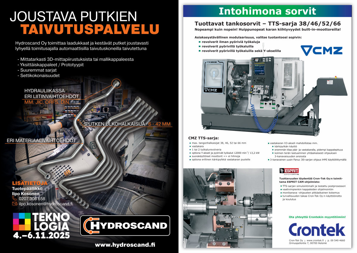 Hydroscand Oy toimittaa laadukkaat ja kestävät putket joustavasti lyhyellä toimitusajalla automaattisilla taivutuskoneilla taivutettuna